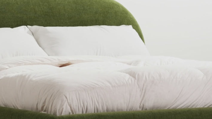 This fully upholstered platform bed boasts lush fabric, a rounded profile, and sleek vibes. Just like sleeping on the chicest cloud, our Genoa Upholstered Bed Frame is the bed of your dreams. No need for a box spring, this bed has a slat base support built in. Simply top with your mattress and comfiest bed-linens and you’re on your way to the best sleep of your life.